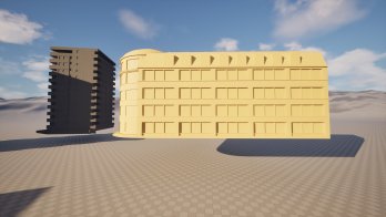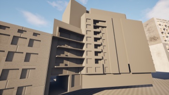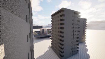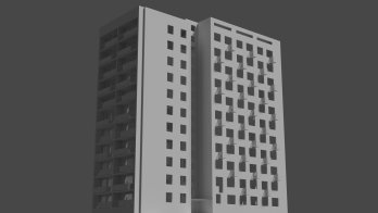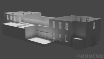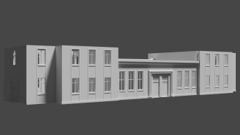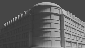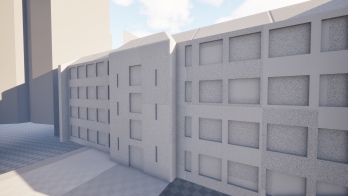 Fragment dzielnicy Niebuszewo z charakterystycznym budynkiem nieistniejących zakładów odzieżowych „Dana”. Obiekty w początkowej fazie tworzenia. W następnej fazie przebudowane zostaną do formy „modułowej”, później tekstury i mapa.