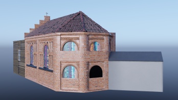cmentarna wraz z cmentarzem jak mogła wyglądać w latach kiedy była użytkowana. Obiekty powstały ok. 1909